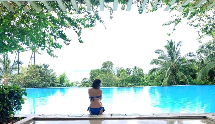 “Enjoying the pool all to myself and made a lot of laps, I think we were the only guest that time.”